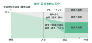 最高裁の判例では「建物の賃貸借においては、賃借人が社会通念上通常の使用をした場合に生ずる賃借物件の劣化又は価値の減少を意味する通常損耗に係る投下資本の減価の回収は、通常、減価償却費や修繕費等の必要経費分を賃料の中に含ませて、その支払を受けることにより行われている。建物の賃借人にその賃貸借において生ずる通常損耗及び経年変化について原状回復義務を負わせるのは賃借人に予期しない特別の負担を課すことになる」。